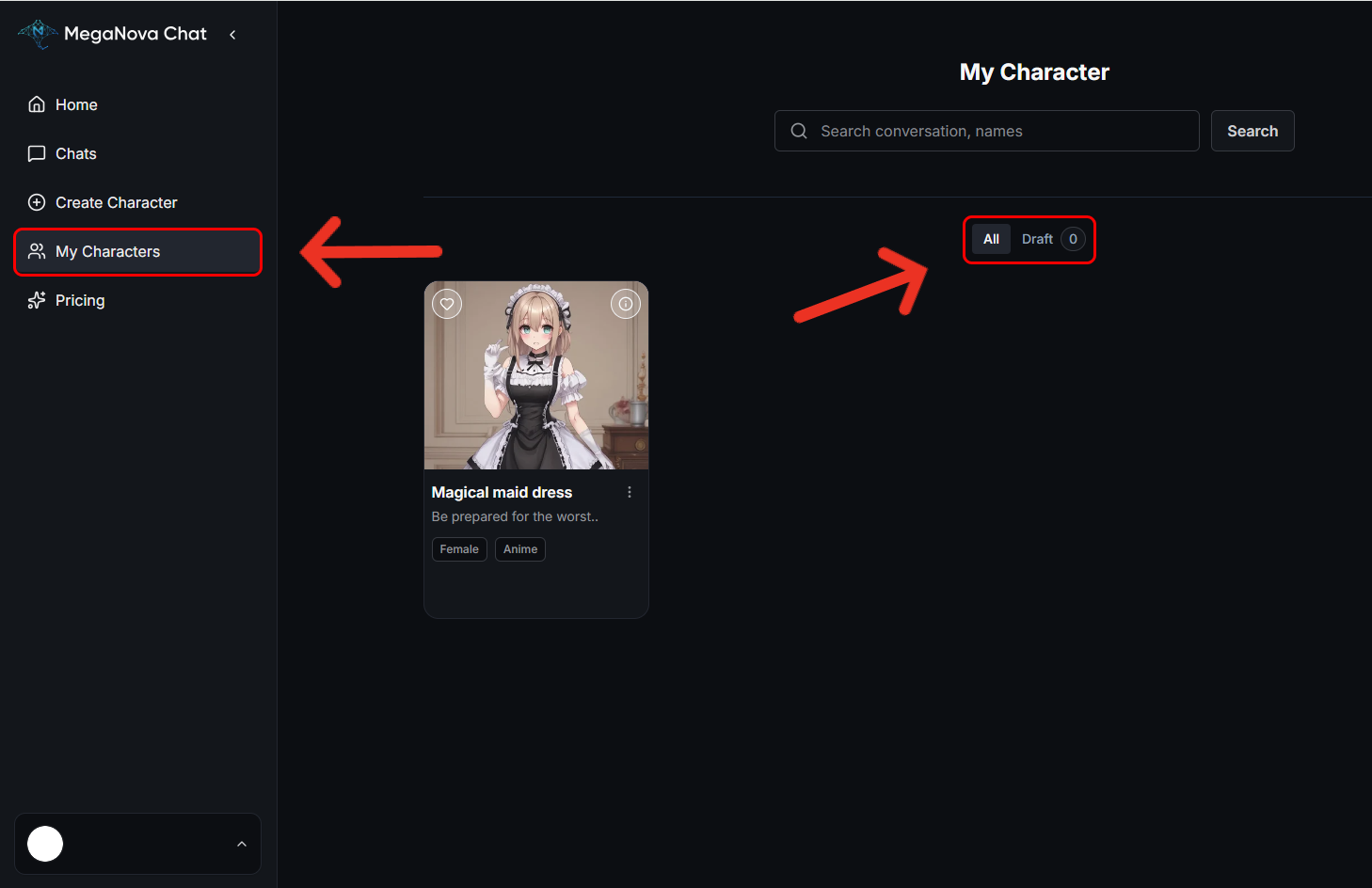 - Create Character: Bring your creativity into lives by clicking on Create Character, and start enjoying long-form conversations, character-driven storytelling and immersive roleplay with MegaNova Chat.