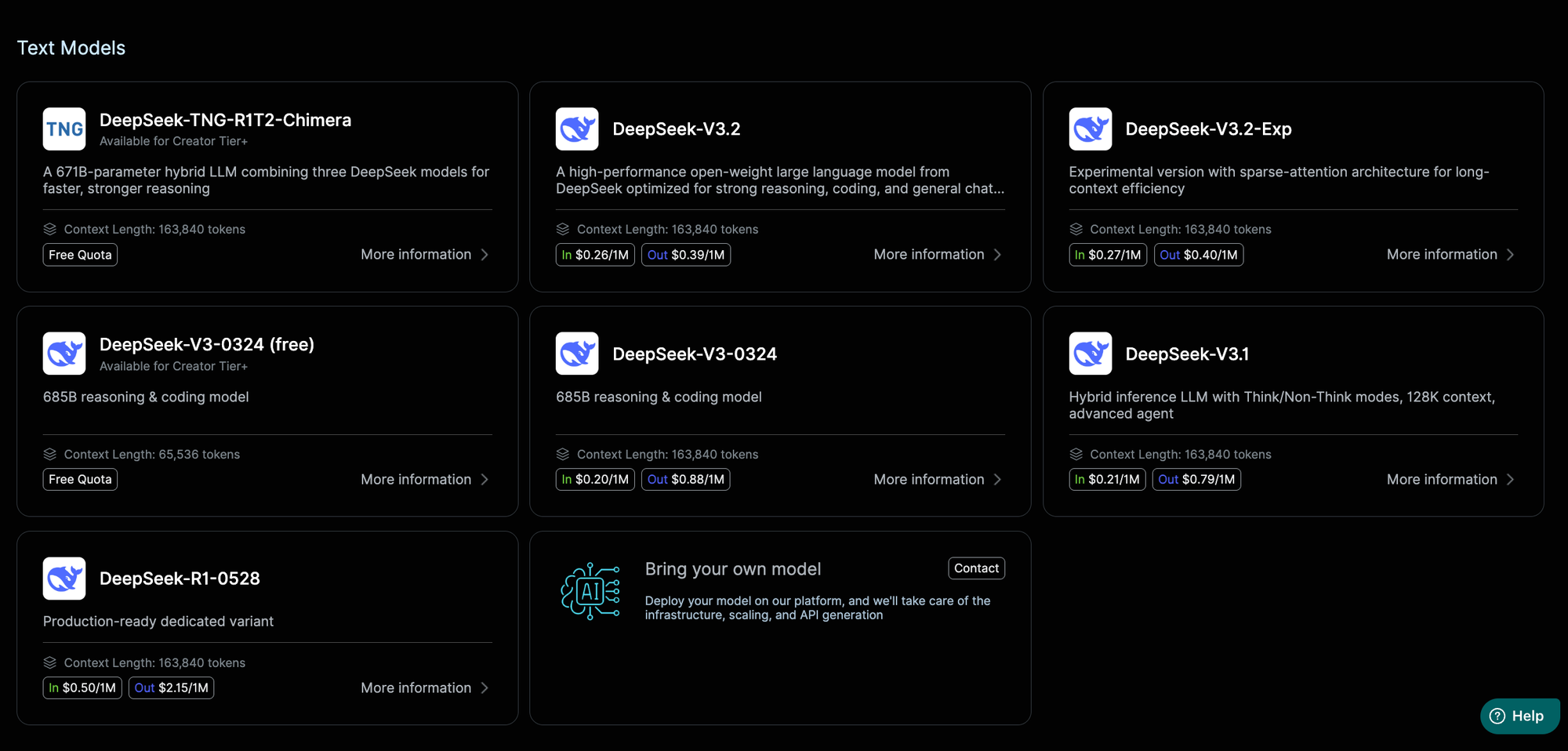 You can build a character once, then test it across DeepSeek, GPT, and custom models. You can switch models without rewriting the persona. You can optimize for cost, speed, or behavior depending on context.