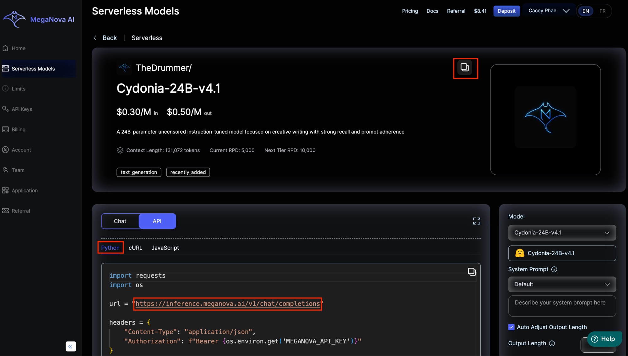 This guide walks you through the Cydonia-24B v4.1 MegaNova's setup—a powerful 24B model engineered for immersive roleplay, clean prose, and massive 131K token memory. With MegaNova’s affordable proxy and plug-and-play integration, you can unlock top-tier RP performance in under 5 minutes.