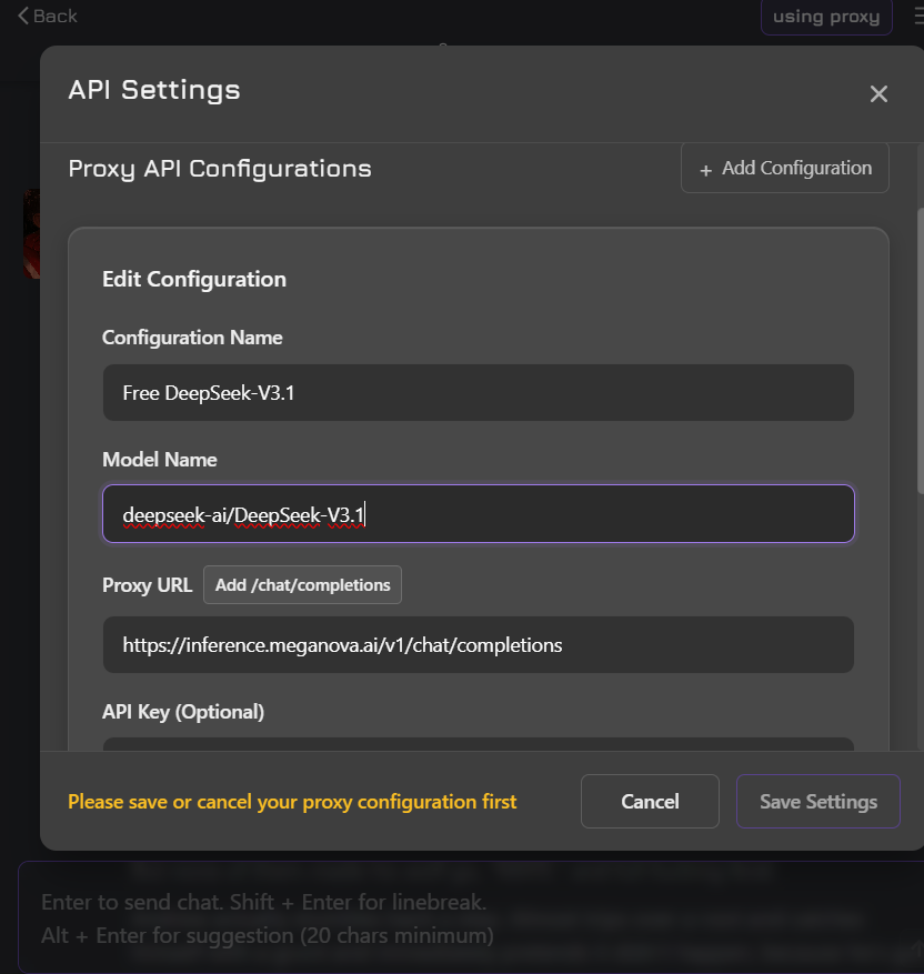 DeepSeek-V3.1 Proxy for Janitor AI with MegaNova Setup Guide