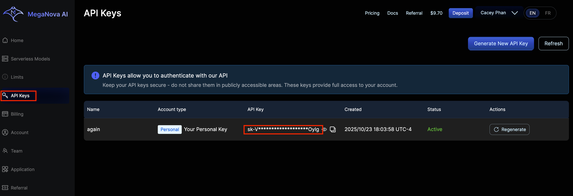 API Key: Paste your API key from MegaNova.