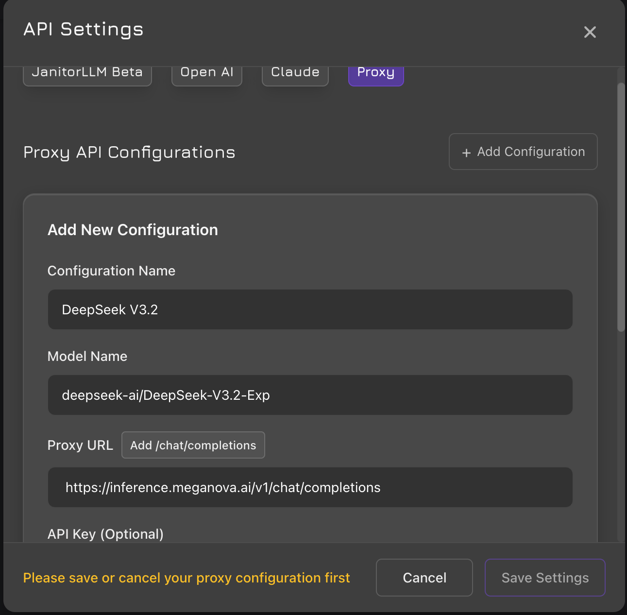 DeepSeek-V3.2-Exp Proxy for Janitor AI with MegaNova Setup Guide
