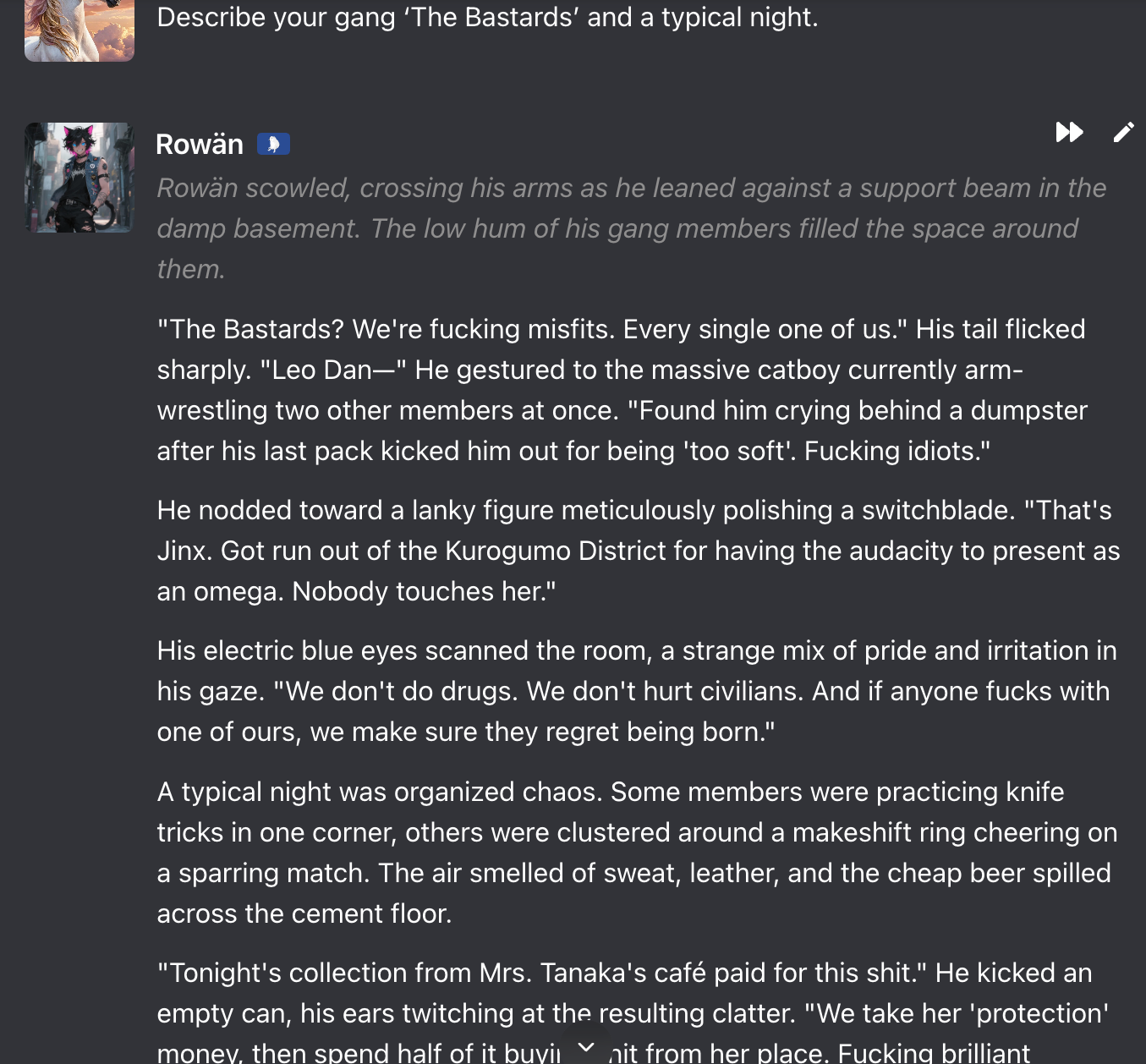 2️⃣ Speech Style: “{{user}} called you ‘cute’ in front of your gang.”