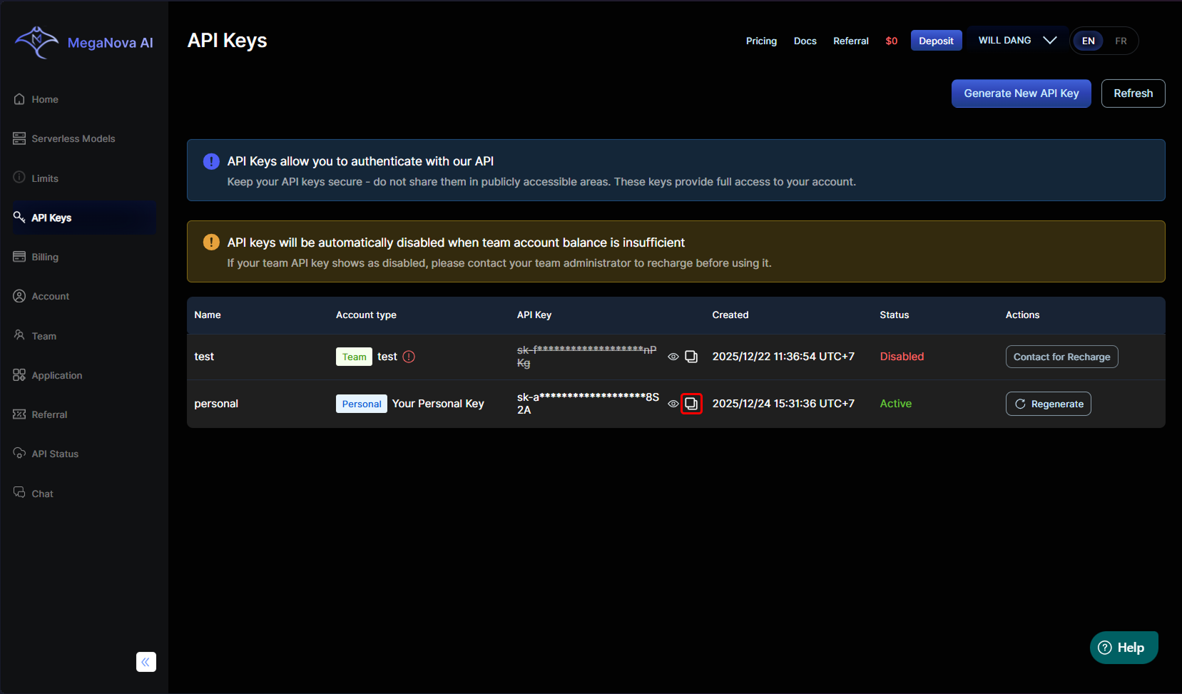 - Copy your API Key: Go to the API Keys section. Copy your key. Remember, keep it safe!.