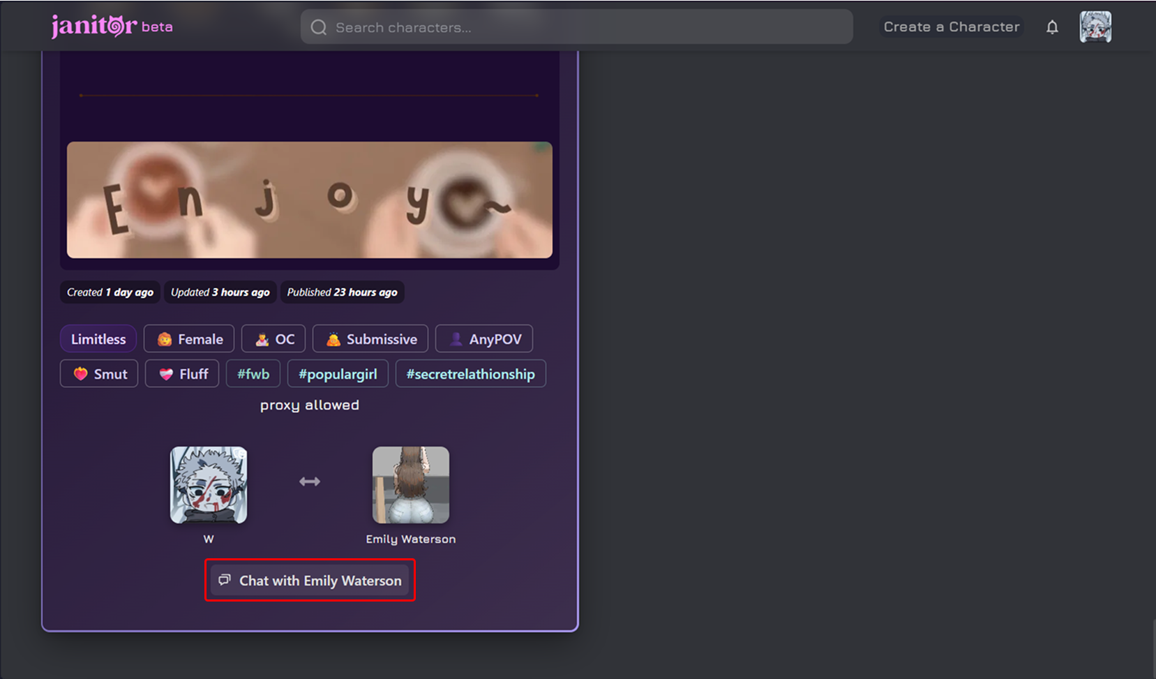 - Open Janitor AI: Select a character to start a conversation.