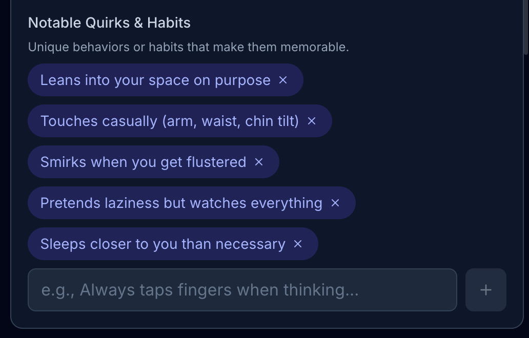 A shameless kunoichi who flirts like breathing and somehow only softens for you.Core Traits