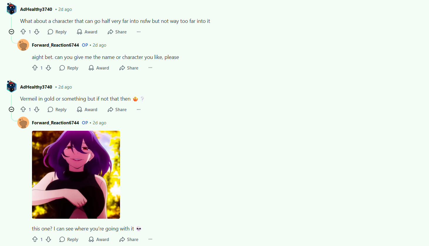 - The Avatar Your character needs a face. The avatar is the first thing users see. For Vermeil, you want an image that captures her specific look: purple hair, red eyes, and her signature dark outfit.