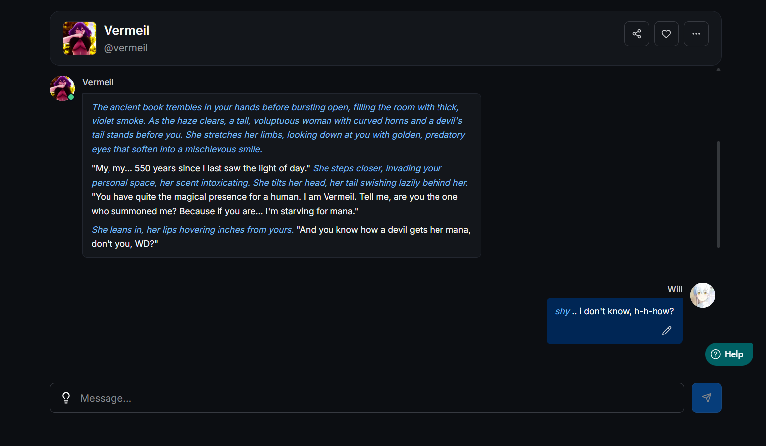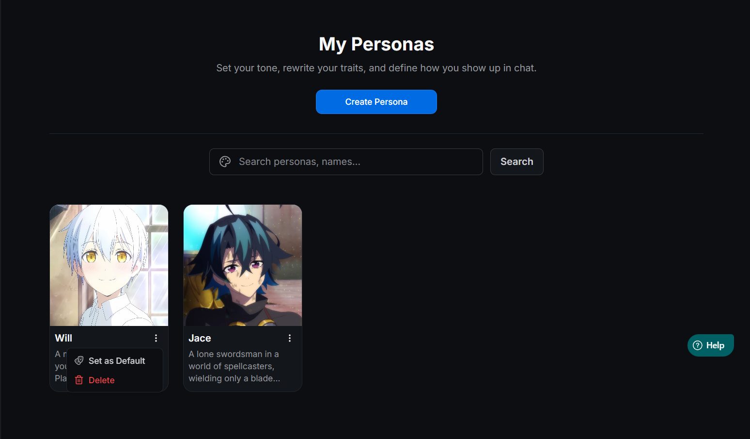 For example, do you want to be a powerful sorceress in one chat? You can create a persona for that. Do you want to be a shy transfer student in another chat? You can create a separate persona for that, too.