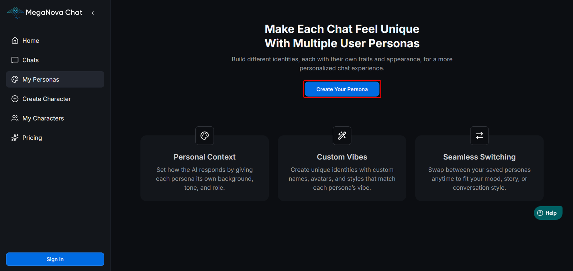 With MegaNova Chat powerful new feature - My Personas, you can now craft unique identities for yourself.