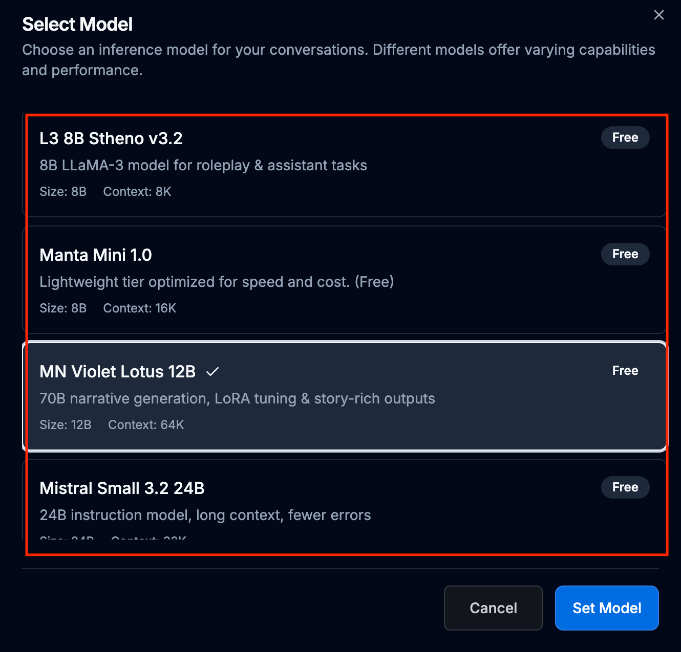Step 3: Start Chatting, and explore different models to find your perfect RP vibe