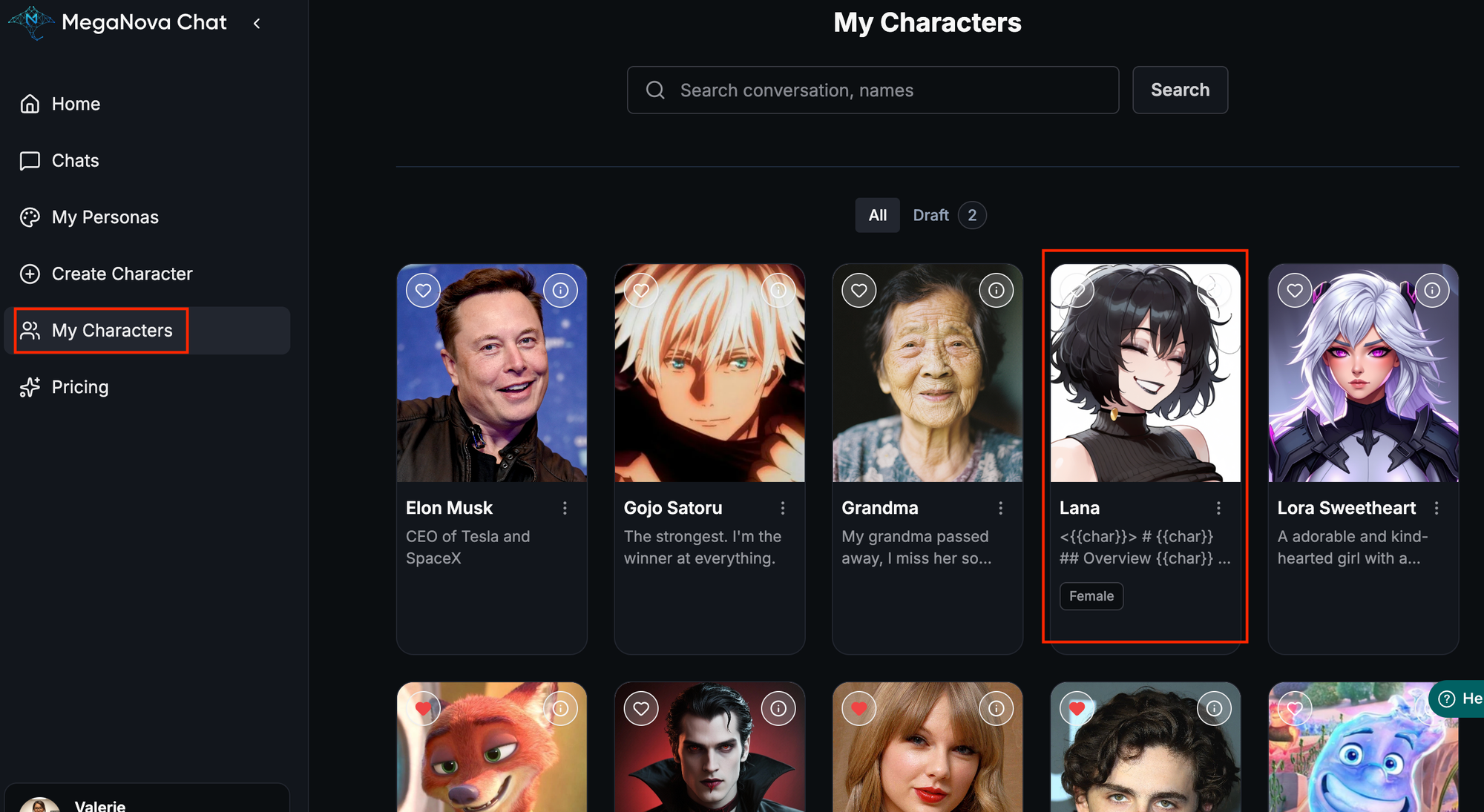 MegaNova Chat makes it instant. We offer a variety of free popular roleplay models with different tones and personalities for your preferences.