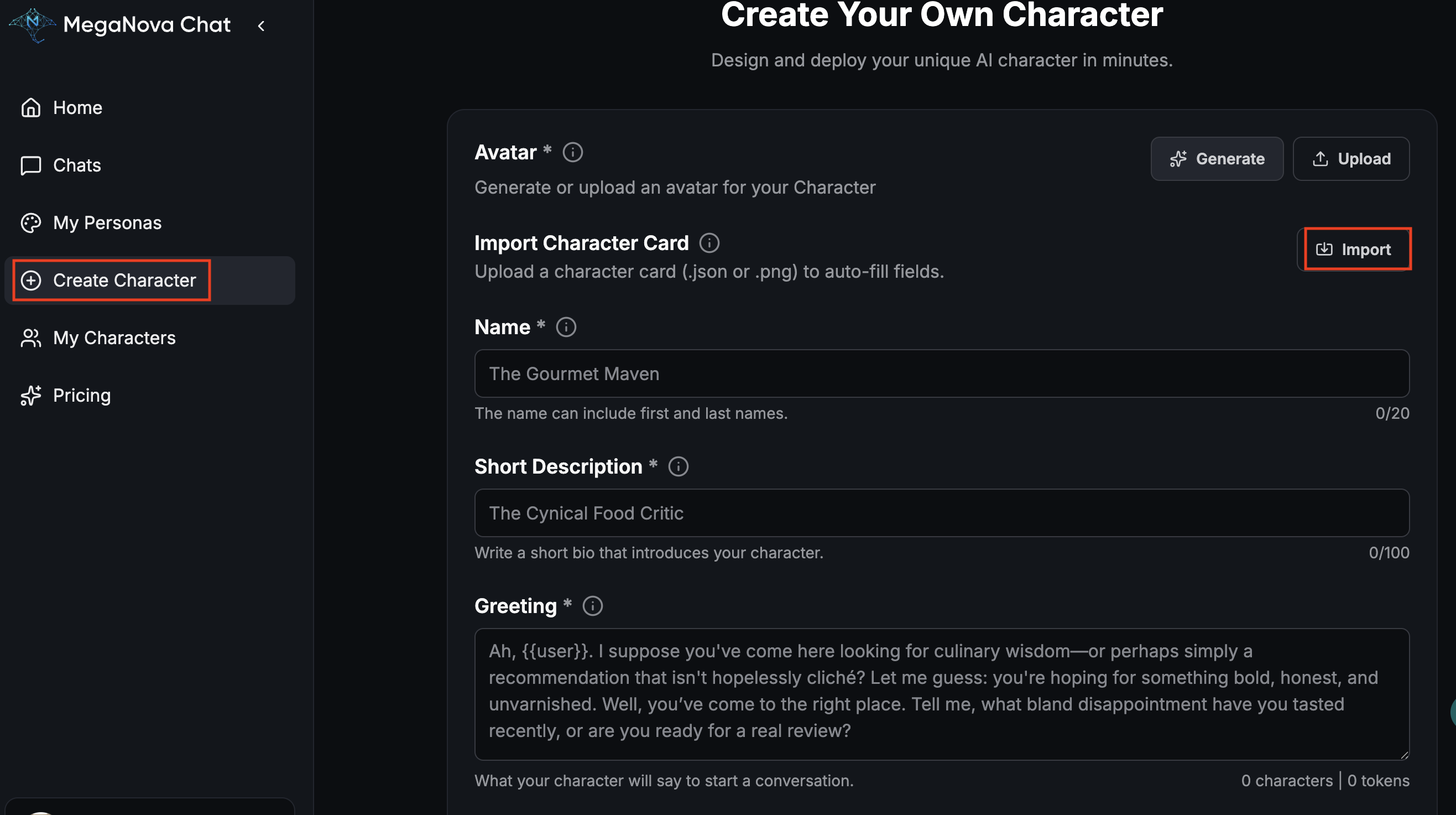 Bringing your favorite ChubAI characters into MegaNova Chat is fast and easy. Just follow these simple steps: