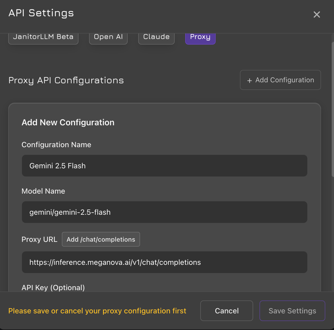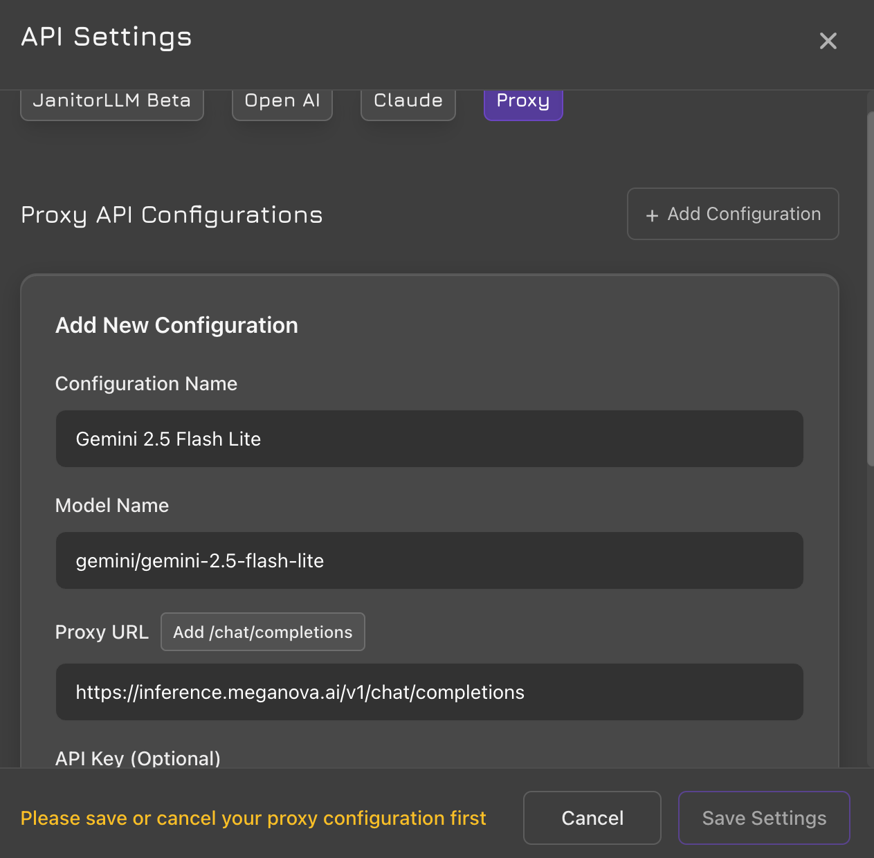 Janitor AI x MegaNova AI: Complete Gemini Model Series Setup Guide