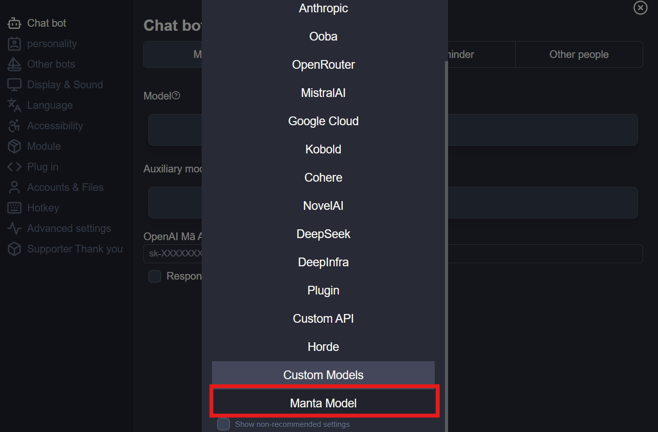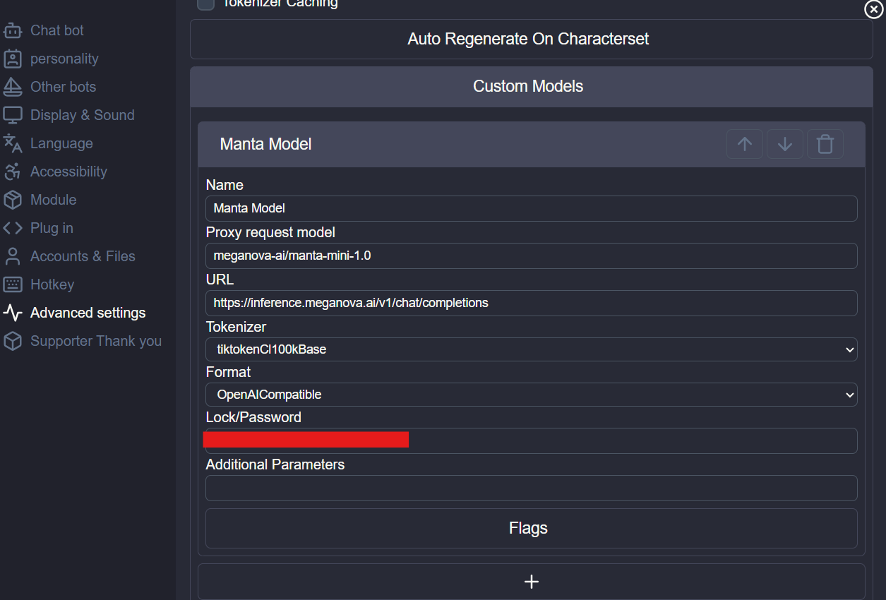 https://inference.meganova.ai/v1/chat/completions- Select a Model: Choose one of the free models available on MegaNova to run with RisuAI, such as: