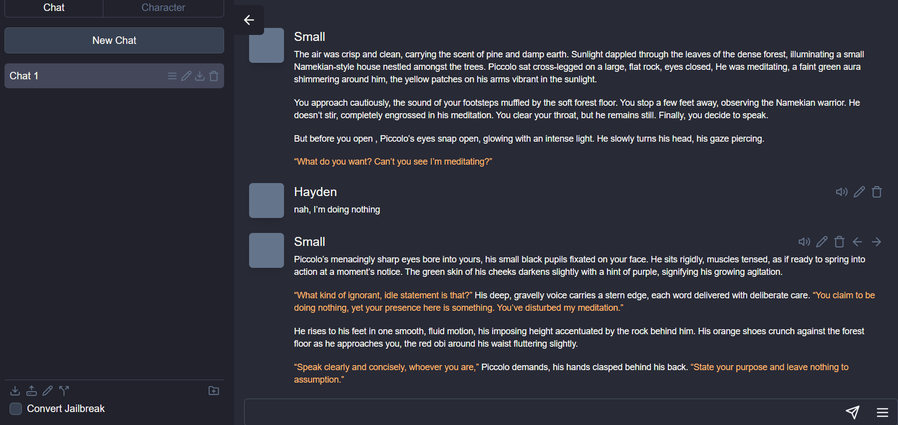 - Begin Roleplay: Choose a character and start interacting! You can ask questions, explore different scenarios, and enjoy an immersive roleplaying experience.