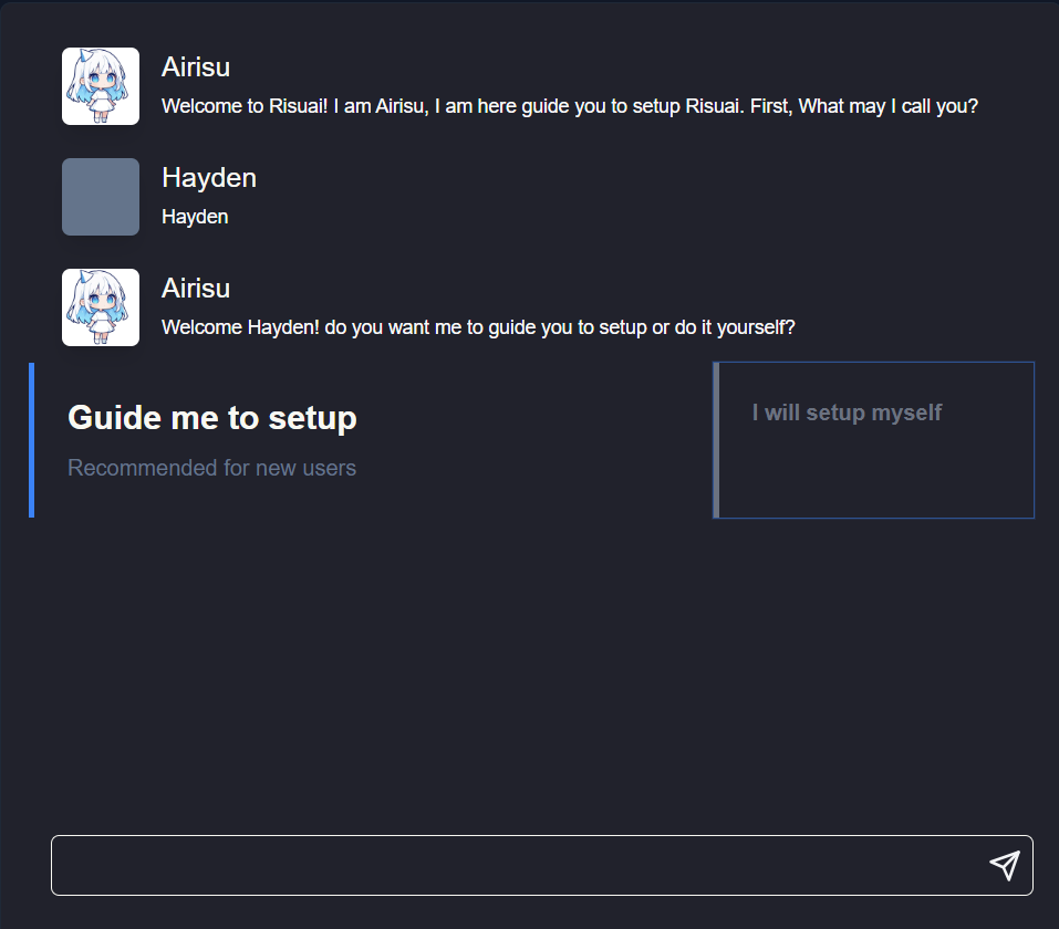 - Go to RisuAI: Select I will setup myself.