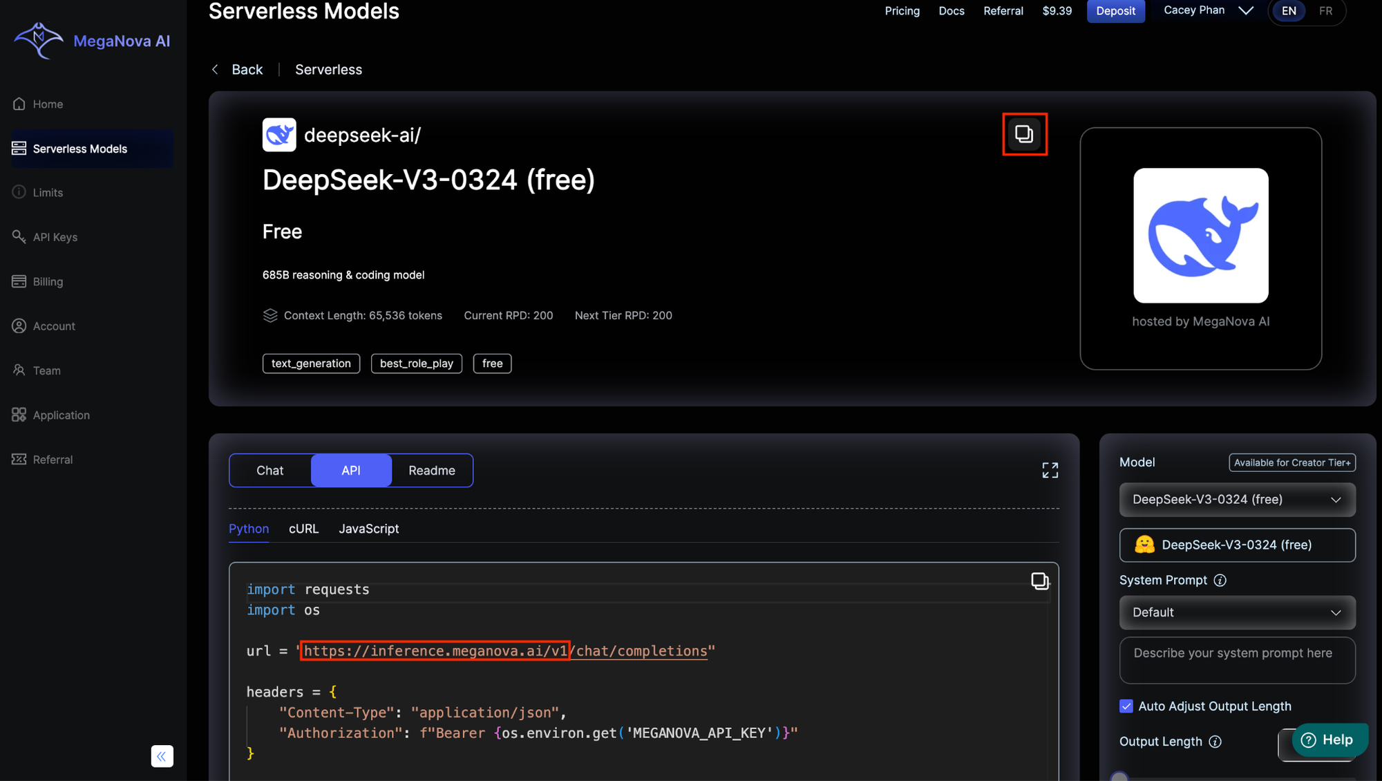 - Wide Model Support: Works seamlessly with various models offered on MegaNova AI.