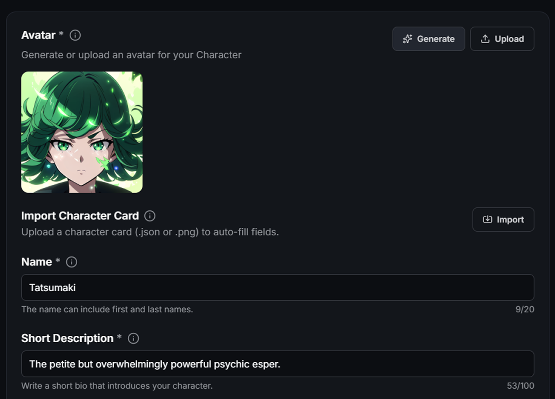 Let's start creating a anime character named Tatsumaki.