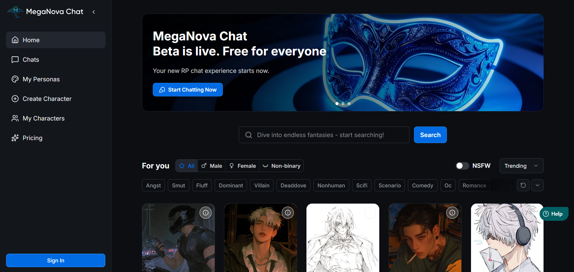Just go to MegaNova Chat and start your creative role-play experience without limitations.