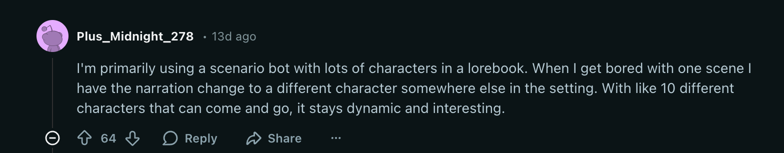 After reading through dozens of real conversations from the community, a pattern becomes clear. Long-running chats don’t happen because of better models or endless patience. They happen because the structure of the roleplay is different.