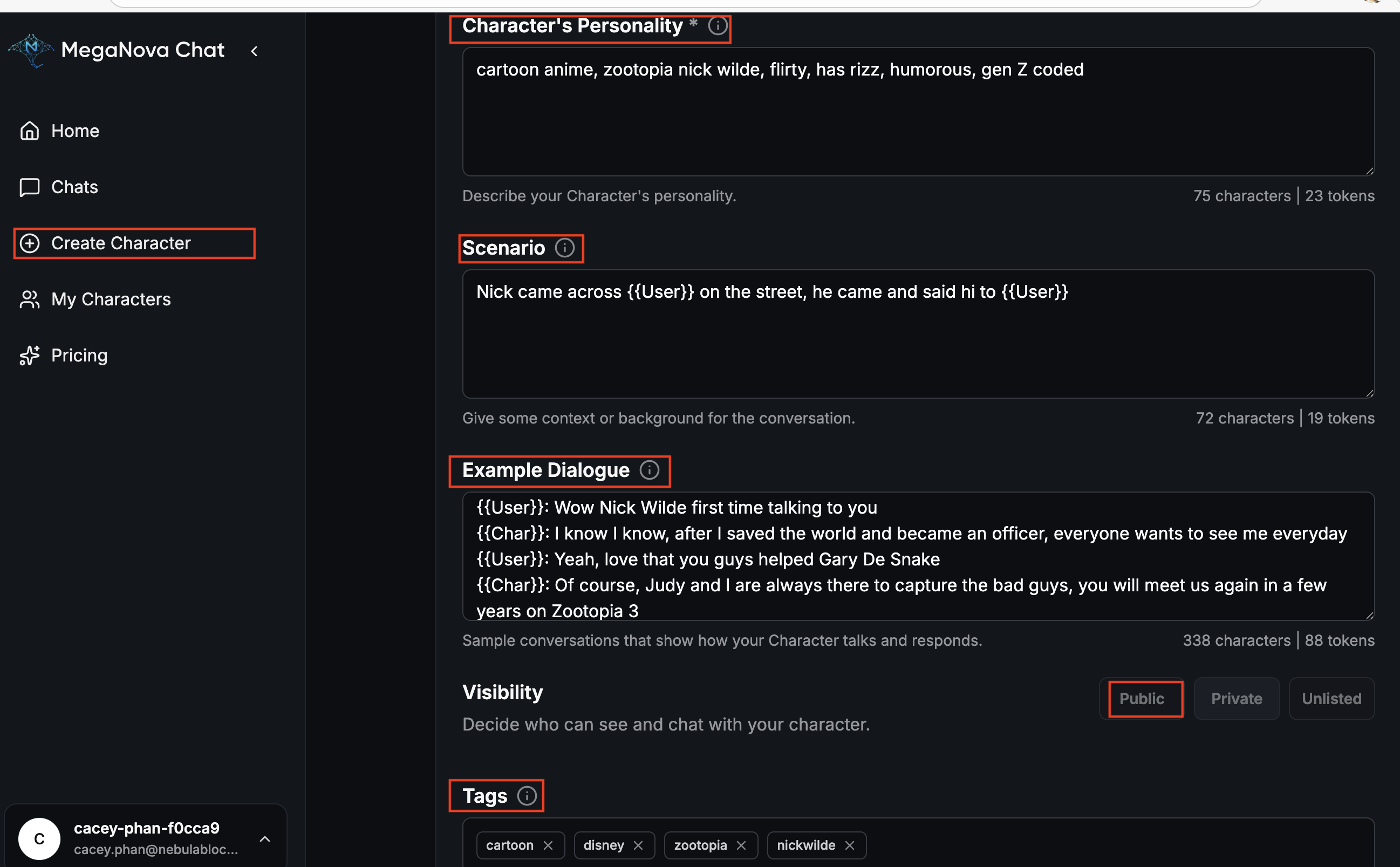 We built MegaNova Chat for plug-and-play character creation, allowing you to easily capture the unique personality of complex characters like Nick Wilde. No complicated code, no massive downloads, and no financial commitment needed to start this journey into creative roleplay.